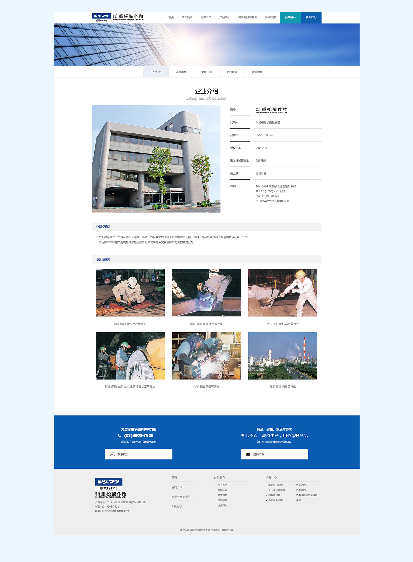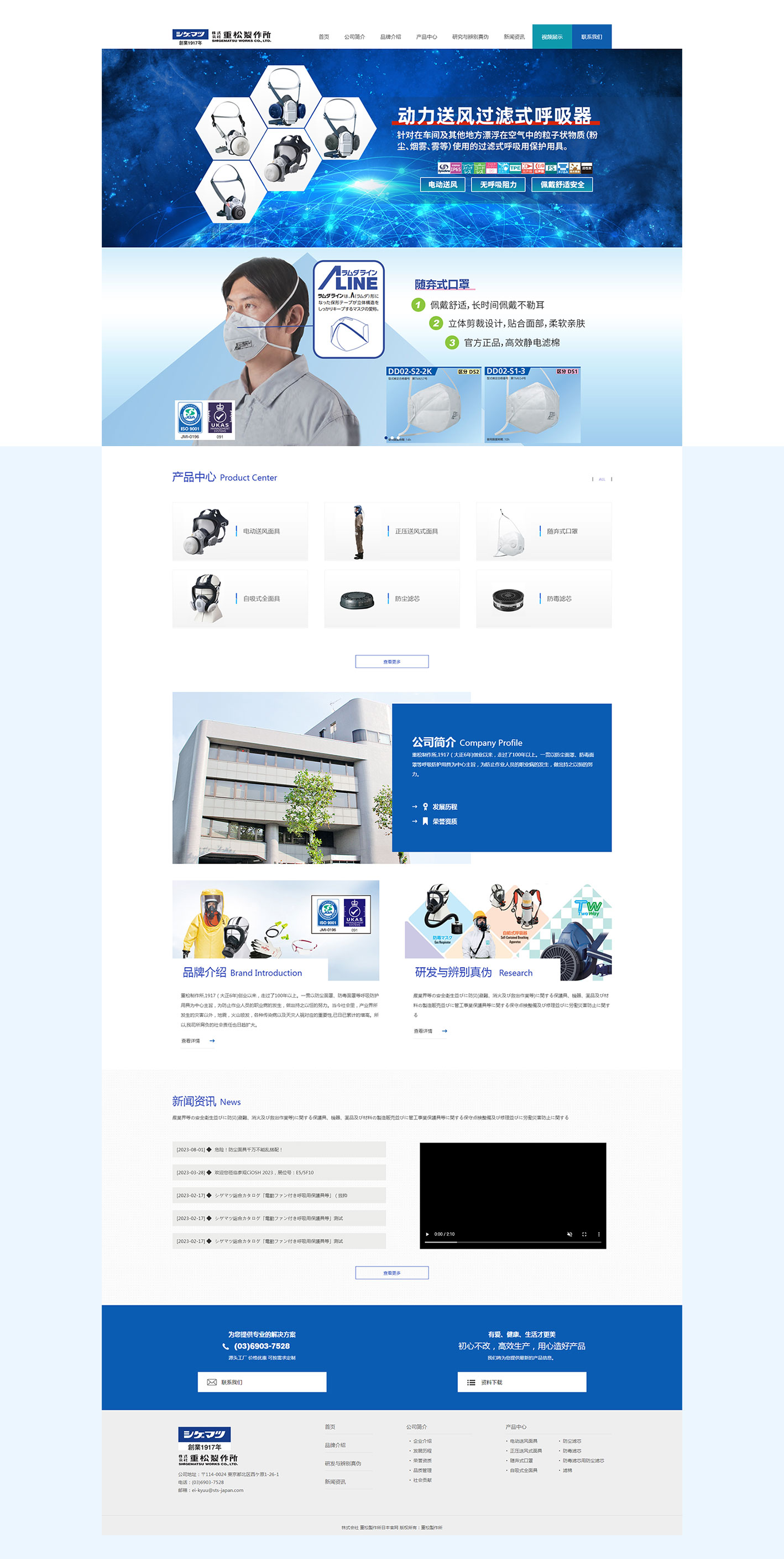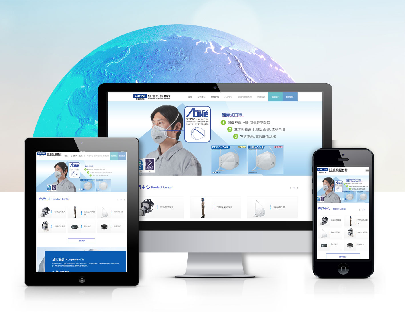 重松制作所,1917(大正6年)创业以来,走过了100年以上。一贯以防尘面罩、防毒面罩等呼吸防护用具为中心主旨,为防止作业人员的职业病的发生,做出持之以恒的努力。 当今社会里,产业界所发生的灾害以外,地震,火山喷发,各种传染病以及天灾人祸对应的重要性,已日已累计的增高。 所以,我司所肩负的社会责任也日趋扩大。